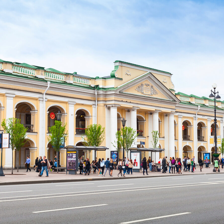 - Один из старейших универмагов России: Большой Гостиный двор строили в 1761–1785 годах по проекту Ж.-Б. Валлен-Деламота (проект Растрелли отклонили). Строгий классицизм и бесконечные аркады стали визитной карточкой Невского проспекта.