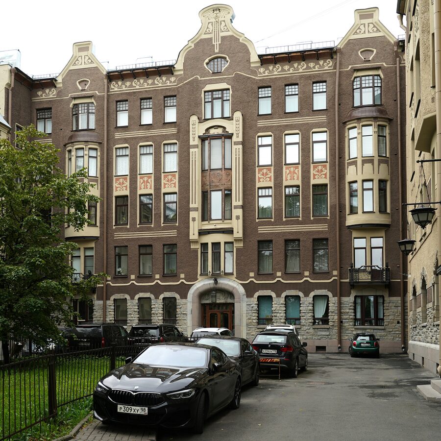 После осмотра дома пройдитесь по Каменноостровскому проспекту: тут целая коллекция петербургского модерна, можно сравнить пластику фасадов и найти «почерк» архитектора Фёдора Лидваля, для своей матери Иды Амалии он и построил этот доходный дом. На угловых линиях — отличный ракурс, чтобы поймать перспективу проспекта и неба.