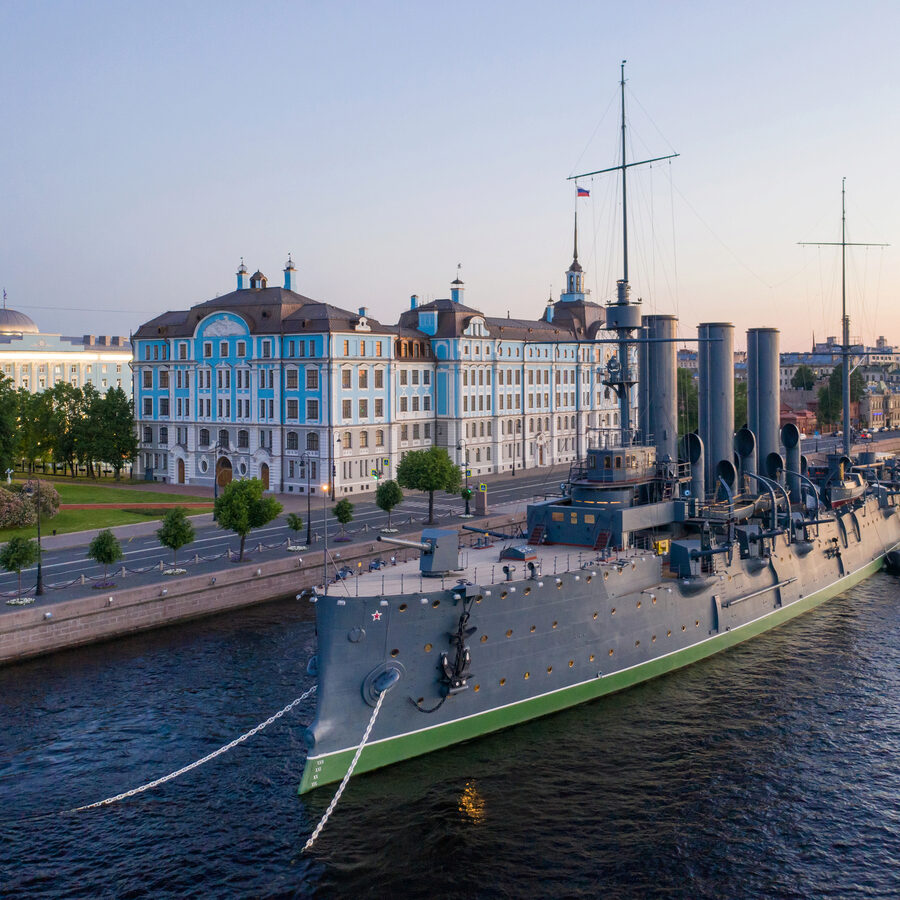 У Невы, у Петроградской набережной, неподвижно стоит символ города — крейсер «Аврора». Его история — как хроника самой страны. Заложенный в 1897 году на Новом Адмиралтействе и спущенный на воду в 1900-м, он вошёл в строй к 1903-му и сразу оказался в эпицентре бурной эпохи. В составе Второй Тихоокеанской эскадры «Аврора» прошла через океаны к Цусиме, где в 1905 году пережила катастрофическое сражение и, пробившись, ушла в нейтральную Манилу. Вернувшись в Балтику, крейсер служил учебным и боевым кораблём, встречая Первую мировую на северных рубежах.