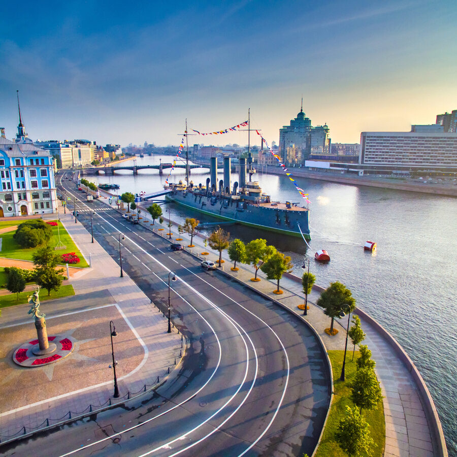 К обеду сверни на Каменноостровский проспект: уютные кофеенки, булочные с коричным духом, локальные бистро. Плотный суп, пирог — и снова к воде. Когда солнце клонится, гранит прогревается, и Петроградская набережная превращается в лучший балкон города: катера скользят мимо, на горизонте легка дымка, а в сезон белых ночей свет не тушится вовсе. Сядь на парапет, наблюдай, как разводятся мосты, как огни бегут по волнам и как «Аврора» спокойна и недвижна среди вечерней суеты.