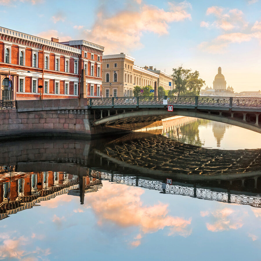 Начните день на тихой улочке у Мойки: из кофейни с ароматом корицы вы выходите на Поцелуев мост — небольшой, камерный, с классическим петербургским видом на изгиб реки и медно-серые набережные. Слышен плеск воды, трамвайчик вдали звенит, а на горизонте мерцает золотой купол Исаакиевского собора. По традиции здесь целуются — говорят, это к счастью и возвращению в Петербург. Если вы одни, достаточно загадать желание и коснуться перил: город хранит такие секреты.