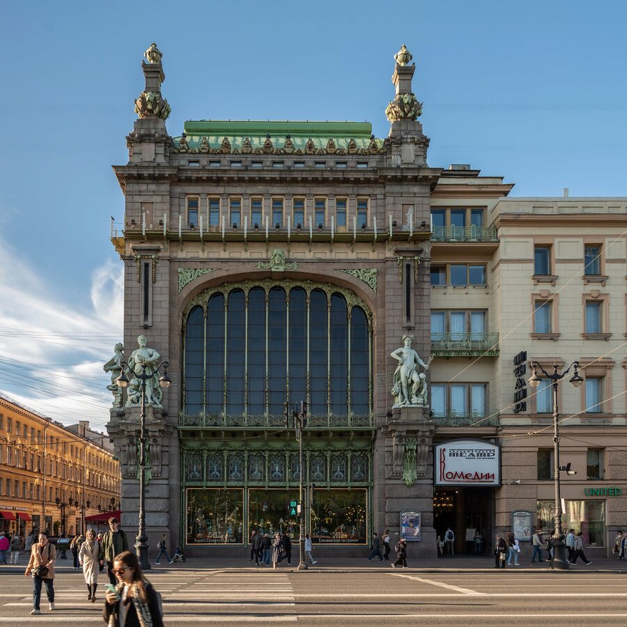 - Театр расположен на Невском проспекте, 56, в знаменитом Доме Елисеевых — шедевре петербургского модерна с витражами и фигурами-аллегориями на фасаде. Это редкий случай, когда под одной крышей соседствуют исторический гастроном и ведущая сцена.