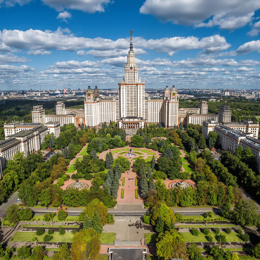 - Главный корпус МГУ — одна из «Семёрок Сталина», построен в 1949–1953 годах по проекту Льва Руднева, высота со шпилем около 240 м, 36 этажей. Долгие годы считался самым высоким учебным зданием в мире.