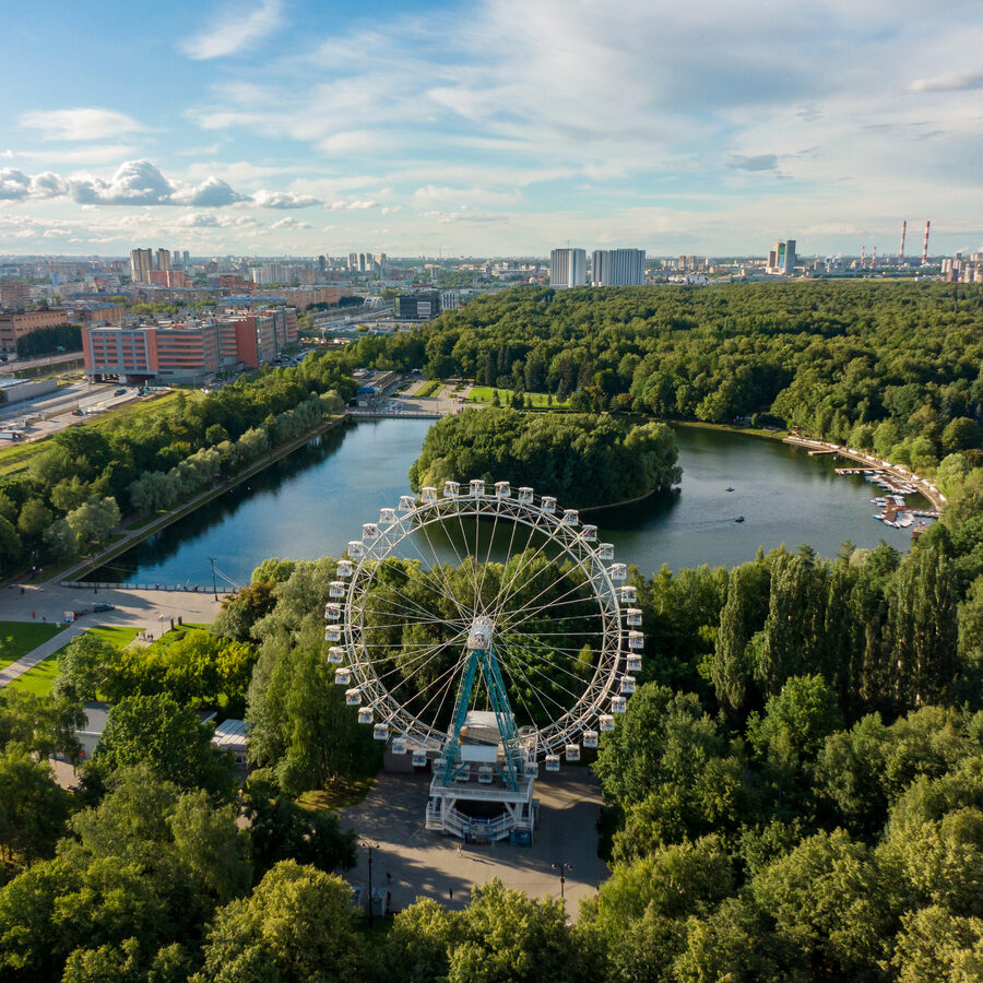 После — час безмятежности у воды: лебеди на зеркале пруда, солнечные блики, легкий ветер. Фотографируете арочные мосты и аллеи, на память — кадр на фоне старых фонарей. К вечеру в парке включается мягкая подсветка, аттракционы наполняются огоньками, и вы позволяете себе круг на колесе обозрения, чтобы увидеть зелёное море крон и небоскребы Москвы на горизонте.