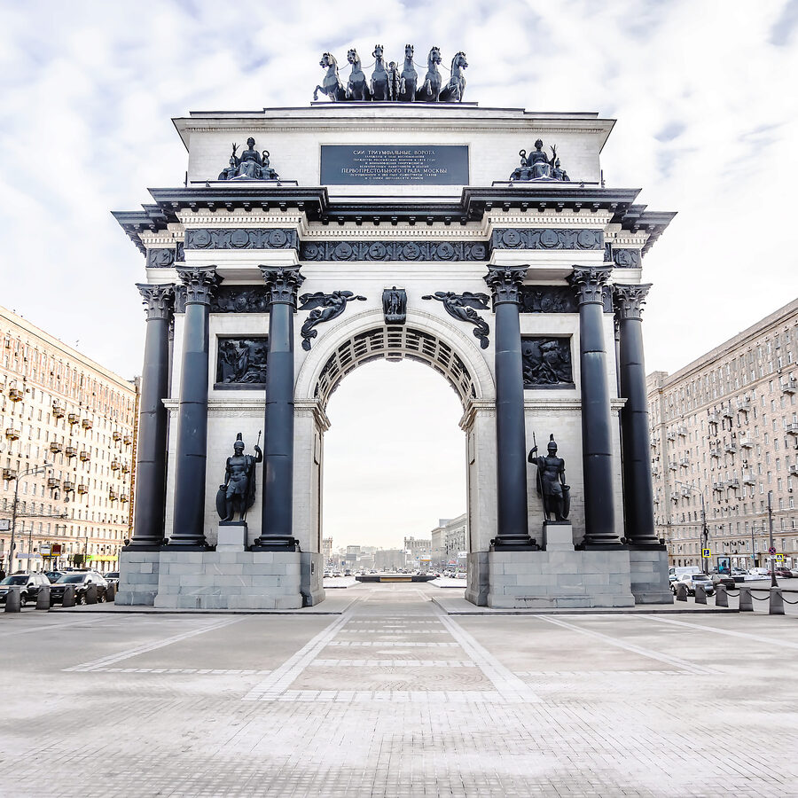 - Построена в честь победы 1812 года: первоначальная арка Осипа Бове стояла у Тверской заставы (1829–1834), была разобрана в 1936-м и воссоздана на Кутузовском проспекте в 1966–1968 годах (арх. Юрий Шевердяев).