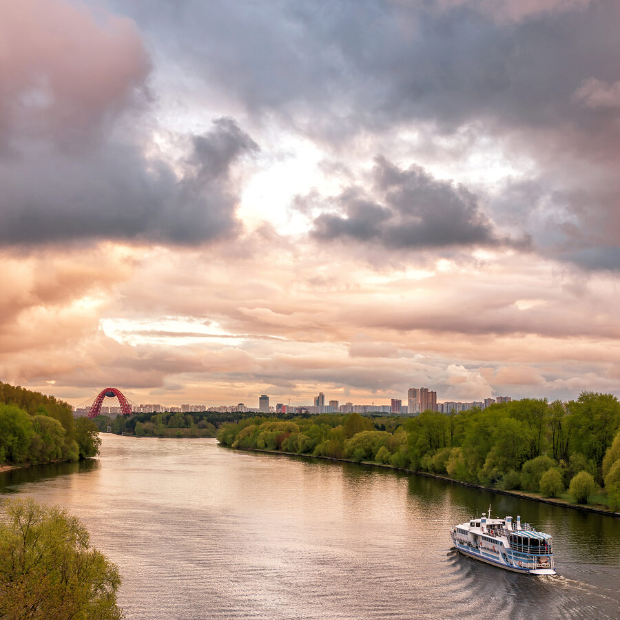 - Символ соседства природы и города — Живописный мост с ярко-красной аркой: отсюда открываются виды на водно-лесной ландшафт Серебряного бора, особенно впечатляющие на закате.