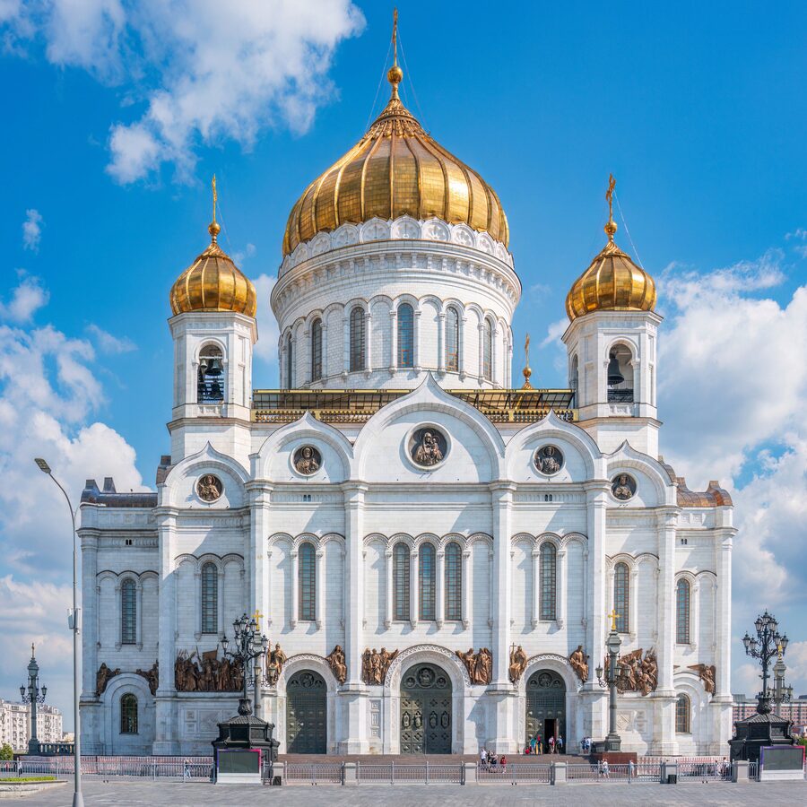 3) Это один из самых высоких православных храмов мира (около 103 м), одновременно вмещает до 10 000 человек. Золотые купола покрыты износостойким составом, обеспечивающим яркий блеск на десятилетия.