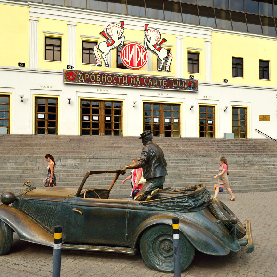 Начните день у метро «Цветной бульвар»: буквально в двух шагах — легендарный Цирк Никулина. По пути пройдитесь по аллеям бульвара, загляните к памятнику Юрию Никулину у входа — отличное место для первых фото. Если пришли заранее, посидите на лавочке под липами или загляните в соседний торговый центр «Tsvetnoy» с панорамными окнами.